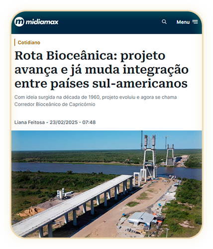 Localizado próximo à Rota Bioceânica, essa propriedade conecta o Brasil diretamente a mercados potenciais na Ásia, Oceania e Costa Oeste dos Estados Unidos, oferecendo uma redução de até 17 dias no transporte em relação ao Porto de Santos (SP). Corredor rodoviário com 2.396 km de extensão, ligando os dois maiores oceanos do planeta, do Atlântico ao Pacífico pelos portos de Antofagasta e Iquique, no Chile, passando por Paraguai e Argentina.