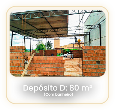 Depósito D: 80 m² com um banheiro.