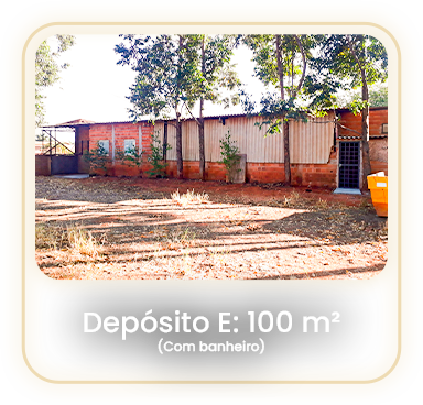Depósito E: 100 m² (5x20x4) com banheiro.